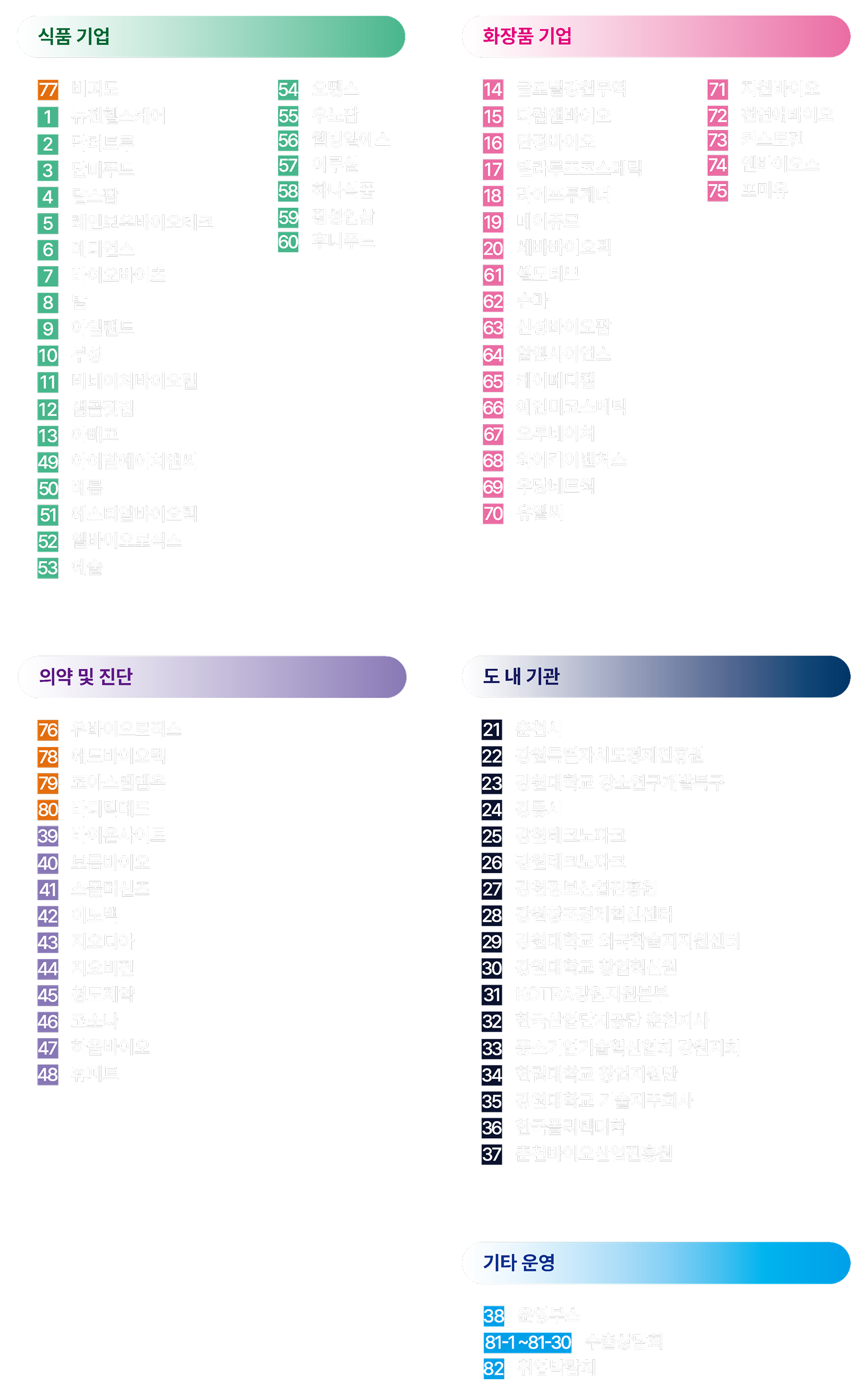 행사장의 부스 배치와 분야별 기업, 주요 무대 및 편의 프로그램 시설을 한눈에 확인하실 수 있습니다.