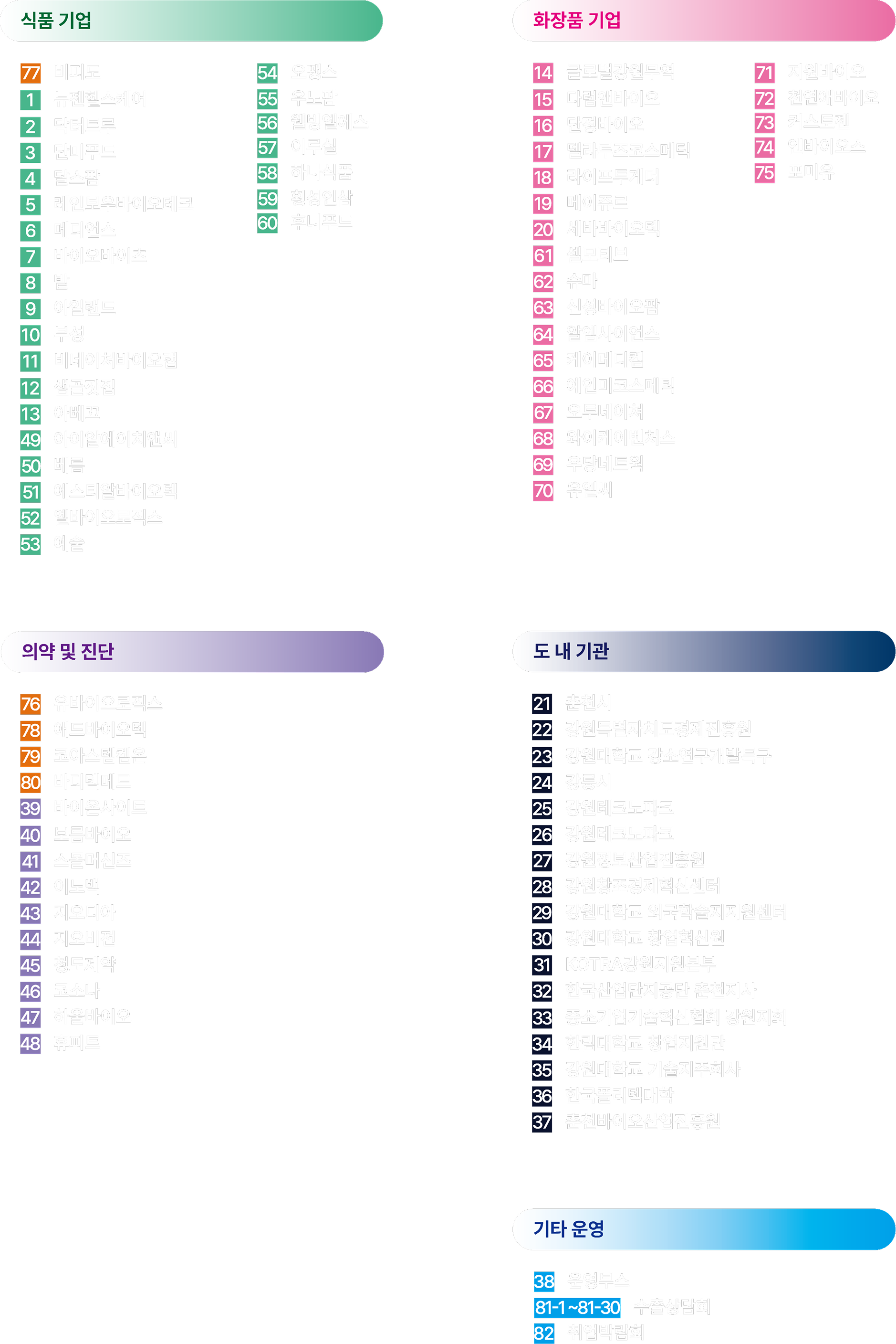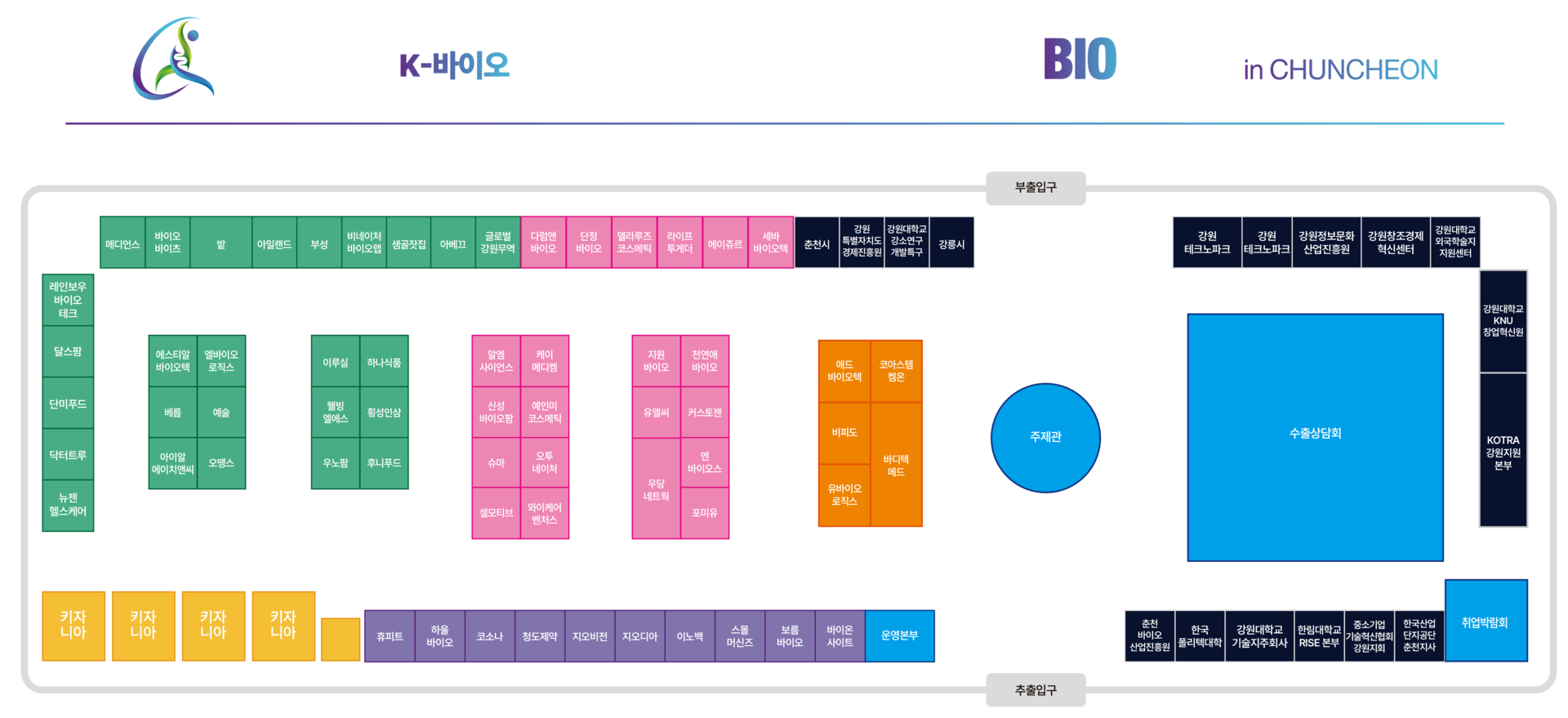 행사장의 부스 배치와 분야별 기업, 주요 무대 및 편의 프로그램 시설을 한눈에 확인하실 수 있습니다.